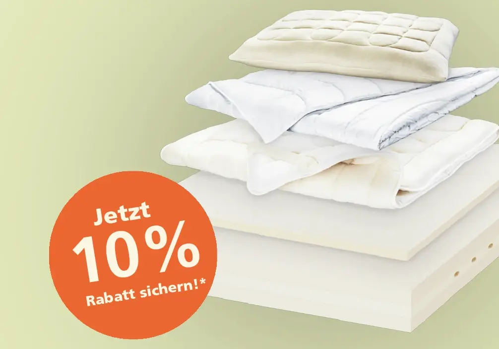 Sichern Sie sich während unserer Frühjahrsaktion vom 01.04.2026 bis zum 09.05.2026 jetzt 10% auf alle Hüsler Nest Matratzen, Topper, Auflagen, Bettdecken und Kissen.